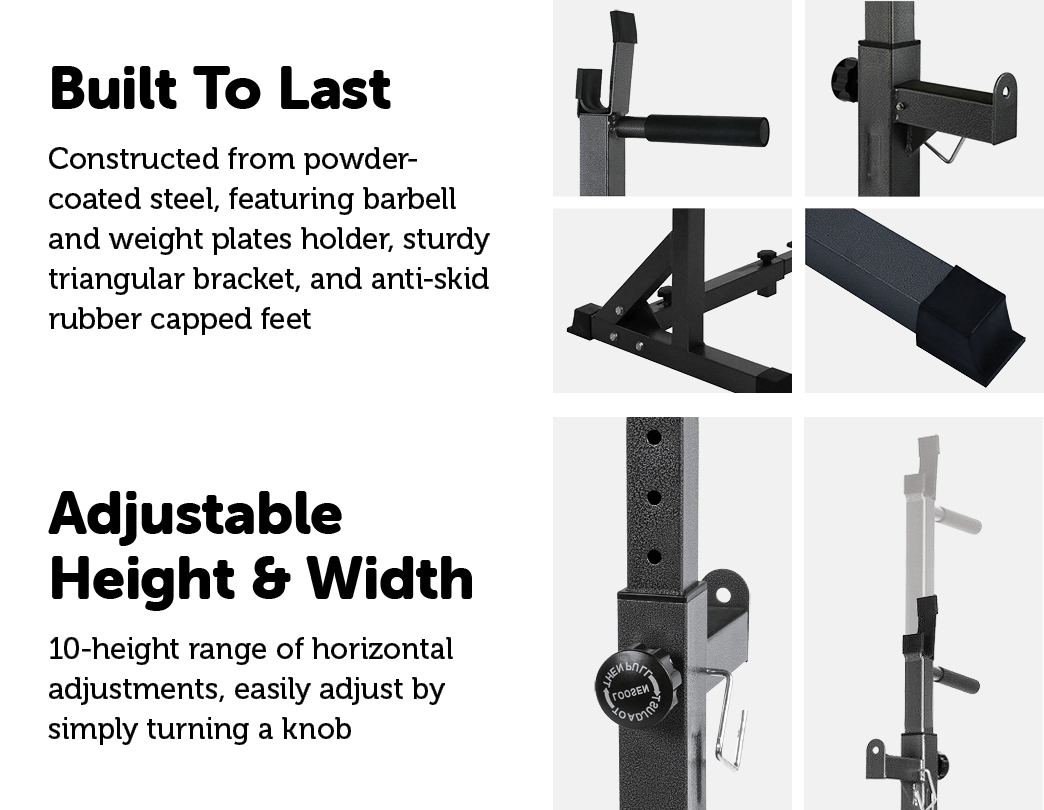 For athletes in training or fitness enthusiasts, squats and deadlifts are an important part of weight training. Without adequate strength, you risk overuse injuries to your joints and tendons. With this adjustable barbell stand by Randy & Travis Machinery, though, you can help prevent overuse injuries and build strength at the same time. Its sturdy construction supports your barbell set as you work out.