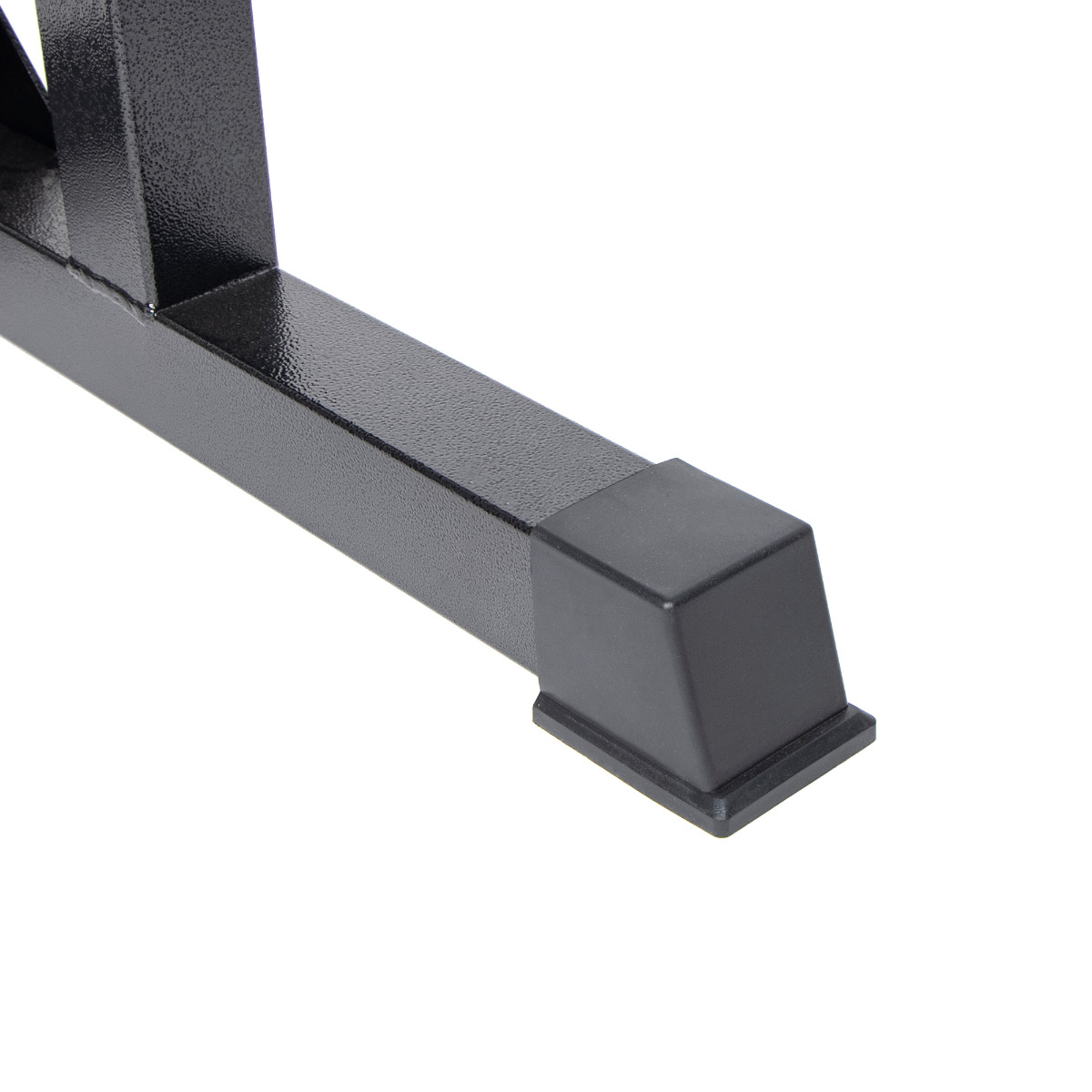 Crafted from heavy-duty powder-coated steel, this stand can hold up to 300 kilogrammes. It features ten holes, allowing you to adjust it to a wide range of heights from 79 cm to 101 cm for a customised workout. Never worry about slippage again. Non-slip feet provide stability for intense workouts.