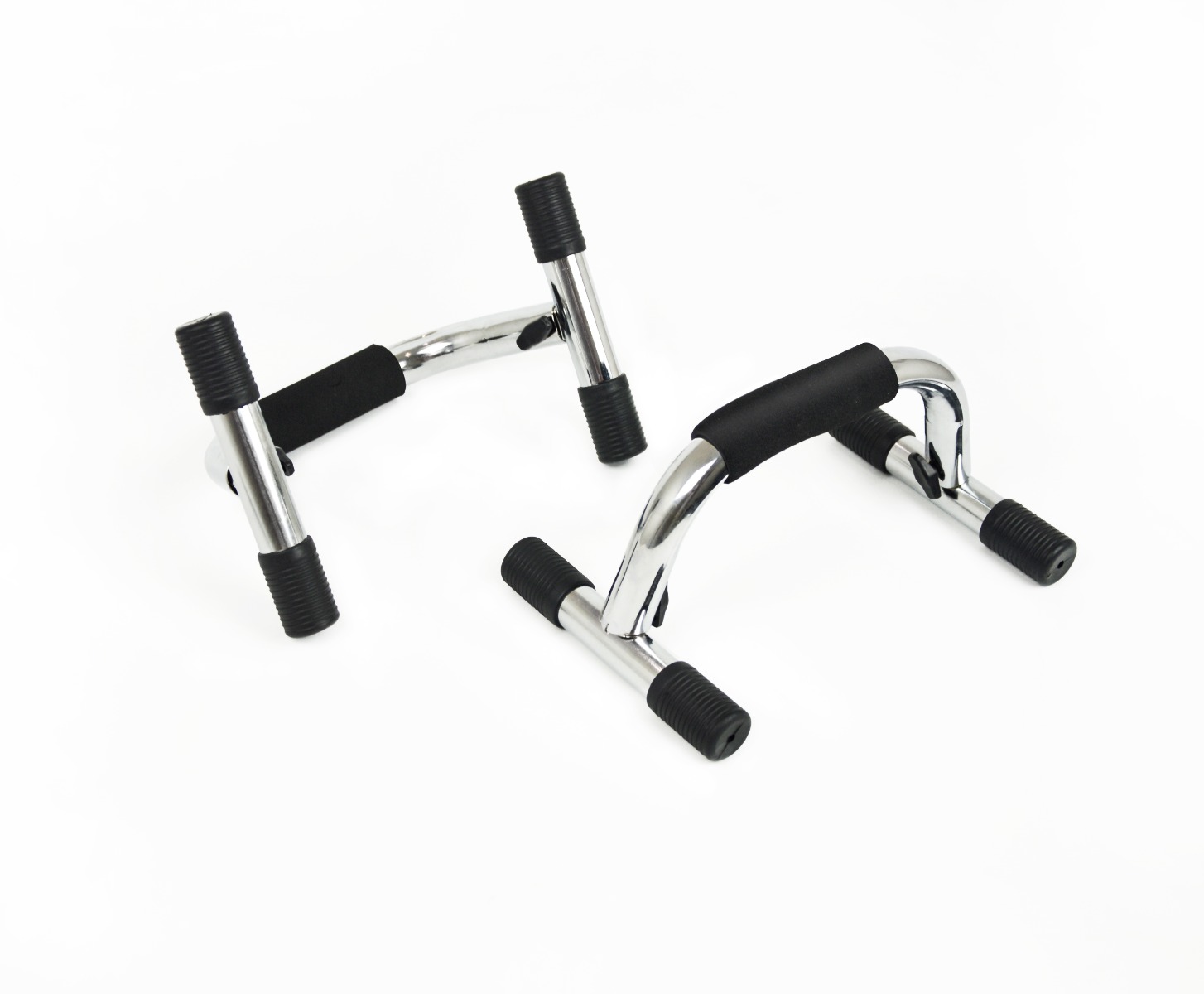 You’ll receive a pair of bars made from chrome steel for maximum durability. Non-slip pads on the feet ensure stability on hardwood floors and other surfaces, and foam rubber handles give you a comfortable place to grip. The bars are 10.5 cm from the floor, allowing you to get lower than you could if your hands were directly on the floor. In addition to working your chest and arms with push-ups, you can turn around and do dips to exercise your triceps.