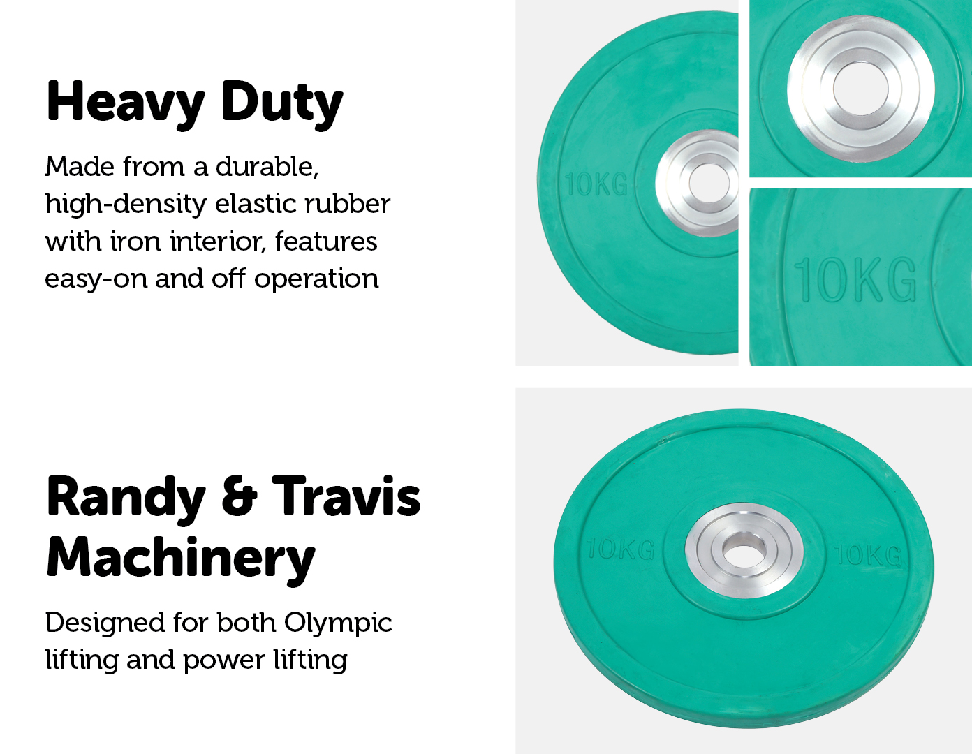 The plate is made from a high-density elastic rubber which makes it extremely resilient in terms of overhead drops and other punishment. The plates are designed and manufactured by Randy & Travis Machinery, a leader in sports equipment, so it’s no wonder it’s built tough!