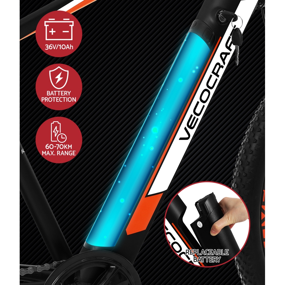 VECOCRAFT 27.5″ Electric Bike eBike e-Bike City Mountain Bicycle eMTB Black